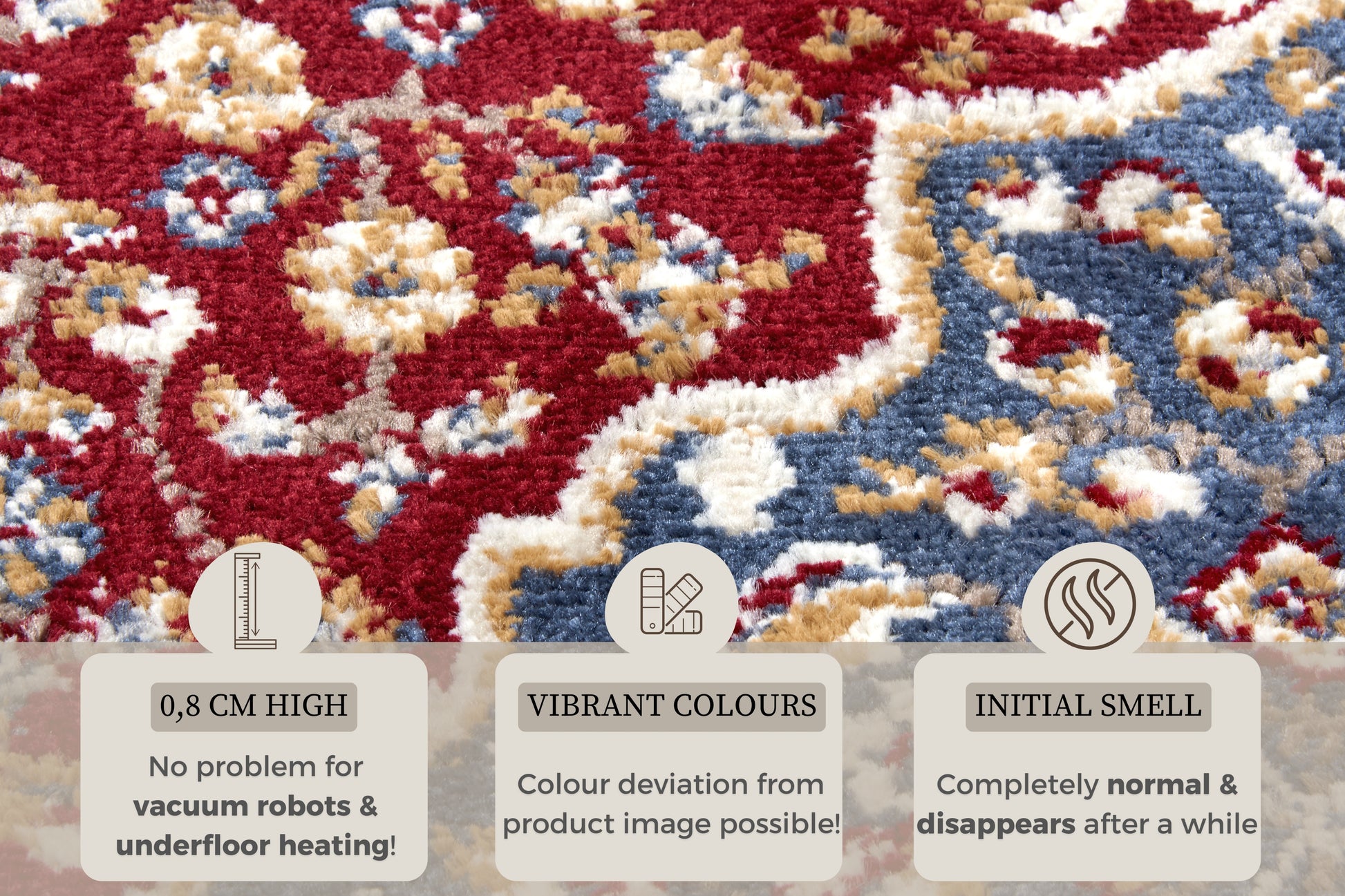 Orientalsk Tæppe Luxor repræsenterer en fusion af traditionel elegance og moderne bekvemmelighed. Tæppet er præget af detaljeret design og nøje udvalgte mønstre. Den avancerede maskinvævning sikrer en præcis gengivelse af komplekse detaljer, der skaber et kunstværk på gulvet.