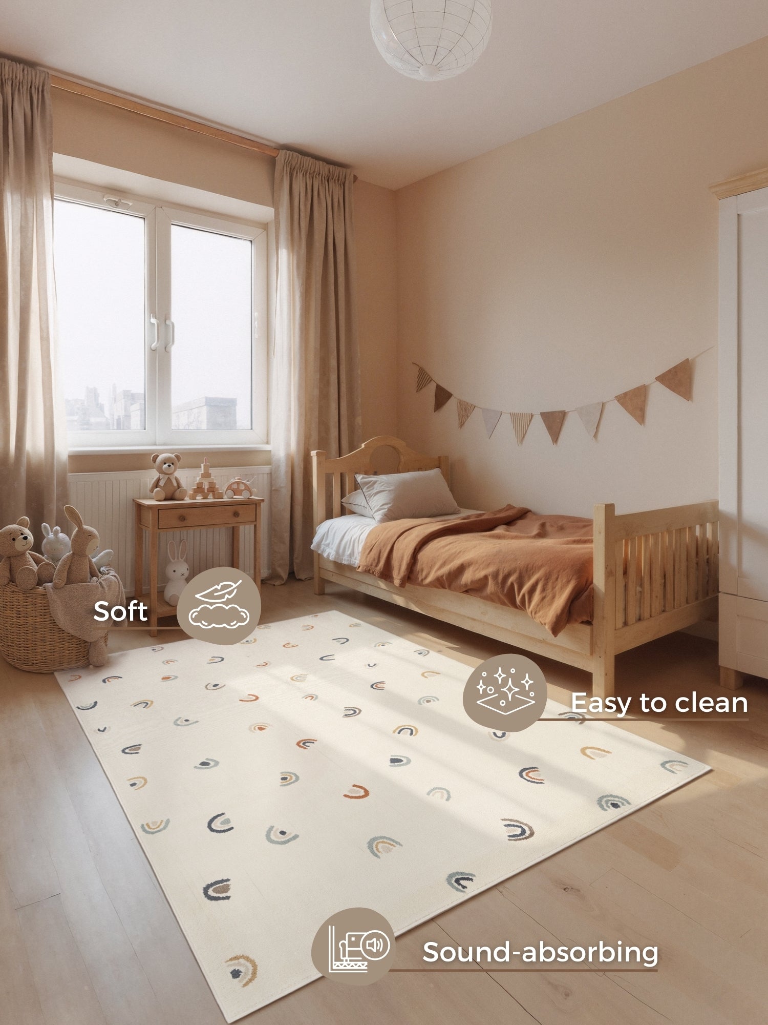 Gør børneværelset til et hyggeligt og legende univers med vores Eventyr Børnetæppe. Tæppet er designet til at skabe varme og komfort – også på gulve med gulvvarme – så små fødder altid møder en blød og behagelig overflade.
