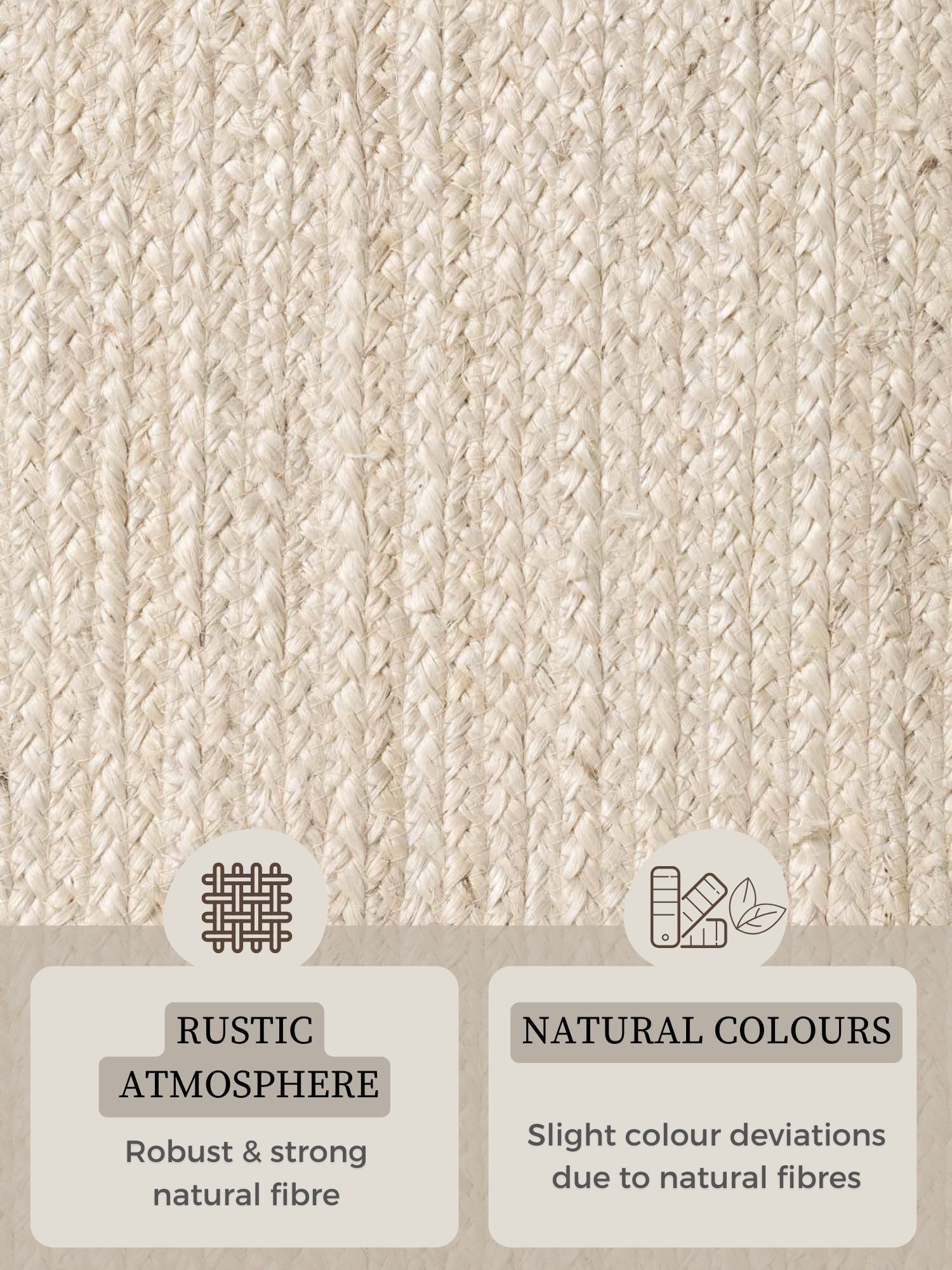 Bring tidløs elegance og naturlig charme ind i dit hjem med vores Rangpur flettede jutetæppe. Det stilfulde design passer perfekt ind i enhver indretning og kan både fungere som et diskret, harmonisk element eller som et elegant blikfang i rummet.