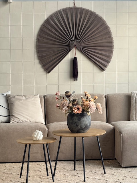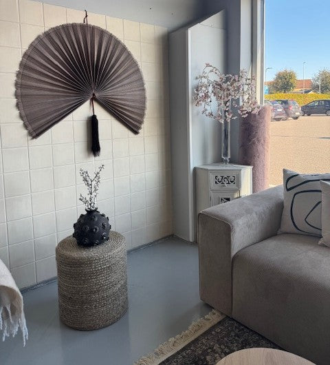 Tilføj et unikt og naturligt udtryk til dit hjem med vores Sensu håndlavede bambus vægvifte. Viften er fremstillet i smukt flettet bambus og designet til at bringe varme, ro og karakter ind i enhver boligstil. Det lette og organiske udtryk gør den til en elegant vægdekoration, der passer både til moderne, minimalistiske og nordiske hjem. Fås i 3 forskellige farver og 2 forskellige størrelser.