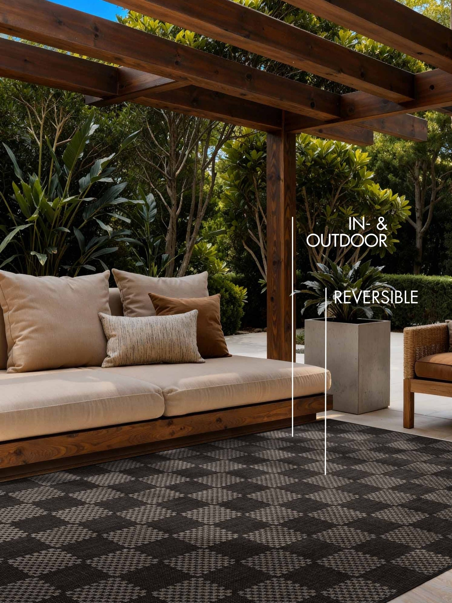 Det moderne og kunstneriske design gør tæppet let at kombinere med eksisterende indretning og fungerer som et elegant blikfang – uanset om det bruges inde eller ude.