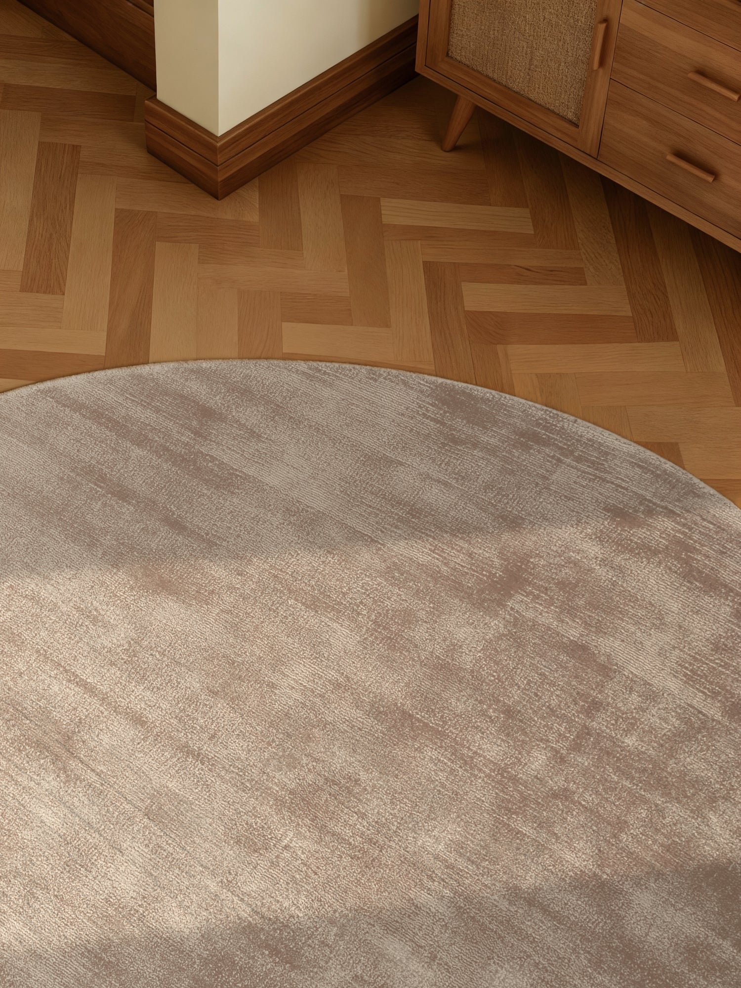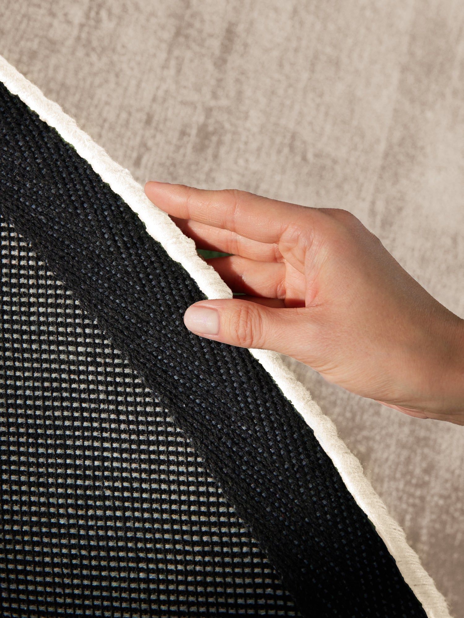 Jane er behageligt blødt under fødderne med fine, tætte fibre, der giver en luksuriøs og komfortabel fornemmelse. Den solide bagside i genanvendt bomuld sikrer god stabilitet og gør tæppet velegnet til hyggelige opholdsrum som stue og soveværelse.