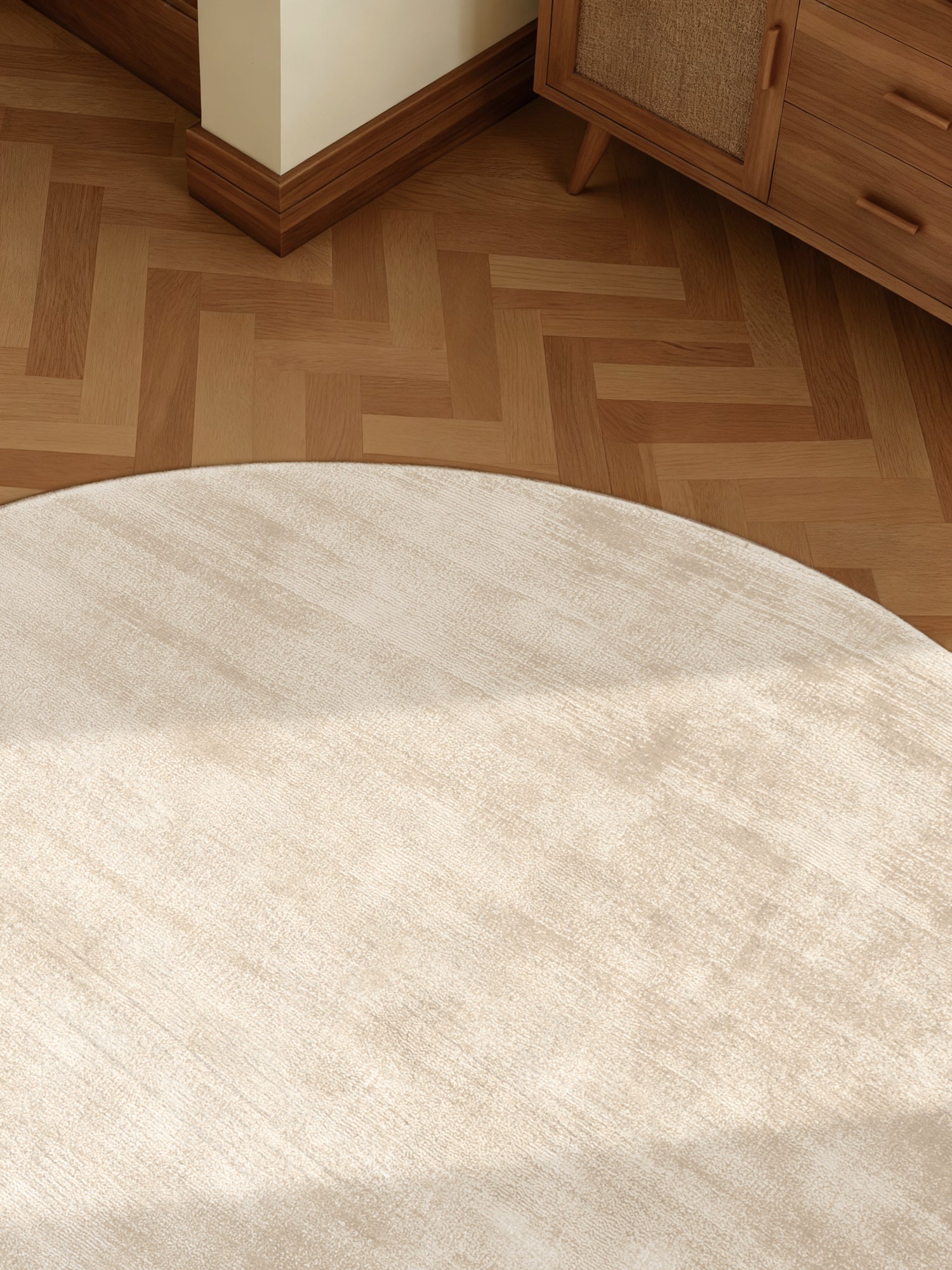 Jane er behageligt blødt under fødderne med fine, tætte fibre, der giver en luksuriøs og komfortabel fornemmelse. Den solide bagside i genanvendt bomuld sikrer god stabilitet og gør tæppet velegnet til hyggelige opholdsrum som stue og soveværelse.