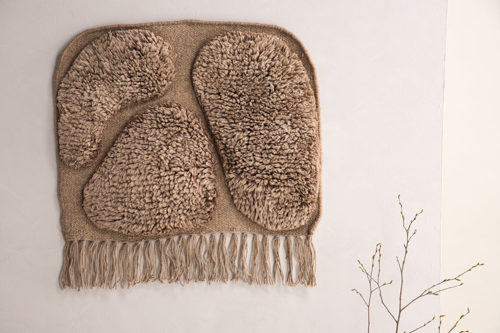 Giv dine vægge et boheme-look med disse smukke dekorative tæpper fra serien Jakobsö! Med sin runde form og frynser forneden tilfører dette tæppe en varm og blød følelse til rummet. Det er vævet med en grovere struktur og har et fluffy mønster, som giver tæppet en lækker dybde. Jakobsö fås i forskellige farver, og denne har en stilren, cremet hvid nuance. Hæng det op i stuen eller soveværelset for at skabe et nyt blikfang på dine vægge!
