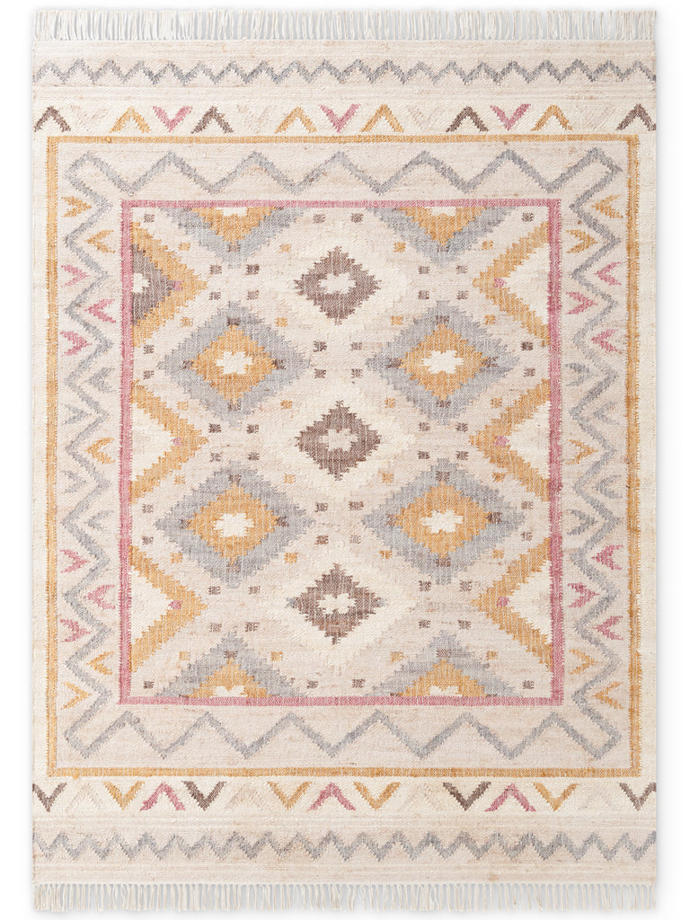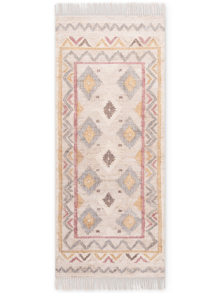 Roya kelim tæppe kombinerer klassisk håndværk med rustik charme, og bringer en varm og autentisk stemning ind i både traditionelle og moderne hjem. Det er håndvævet af 90 % jute og 10 % bomuld, hvilket giver et naturligt, slidstærkt og bæredygtigt tæppe med lang levetid.