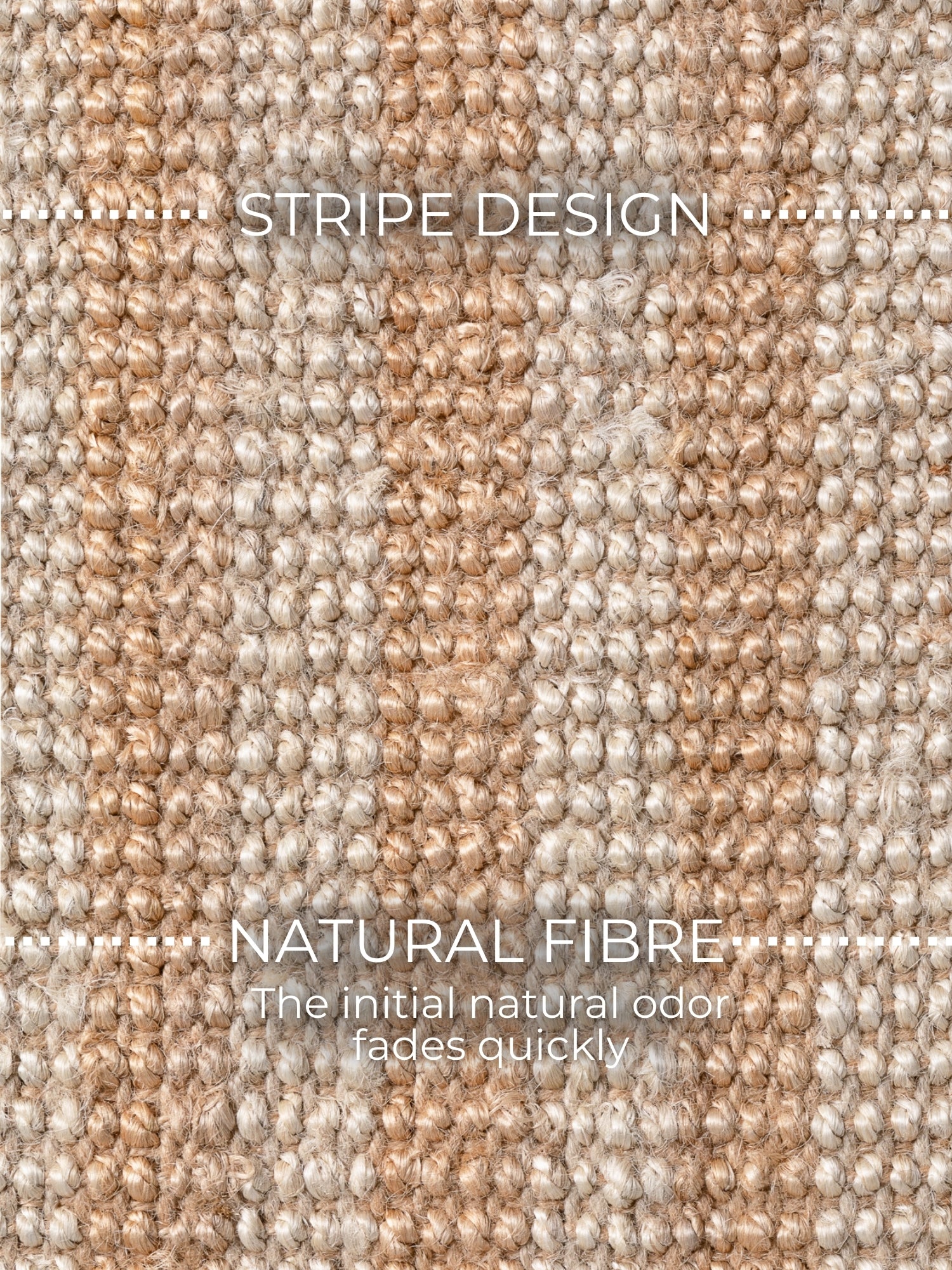 Da tæppet er lavet af et naturmateriale, kan der forekomme mindre farvevariationer i forhold til billederne samt en let, naturlig duft i starten. Dette er helt normalt og aftager med tiden.