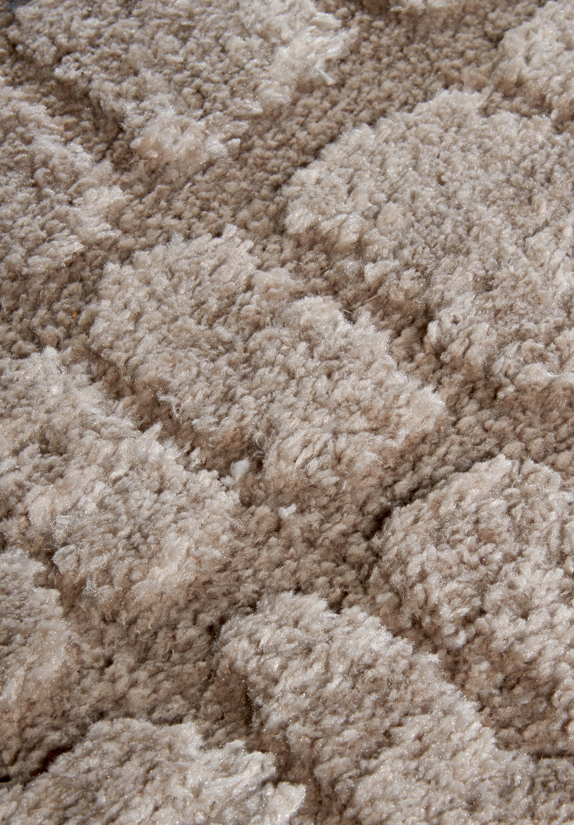 Med sin smukke beige farvepalet og kunstneriske mønster skaber dette tæppe en varm og indbydende atmosfære i ethvert rum. Den høje luv giver en behagelig fornemmelse under fødderne og tilføjer samtidig en ekstra dimension af tekstur til rummet.
