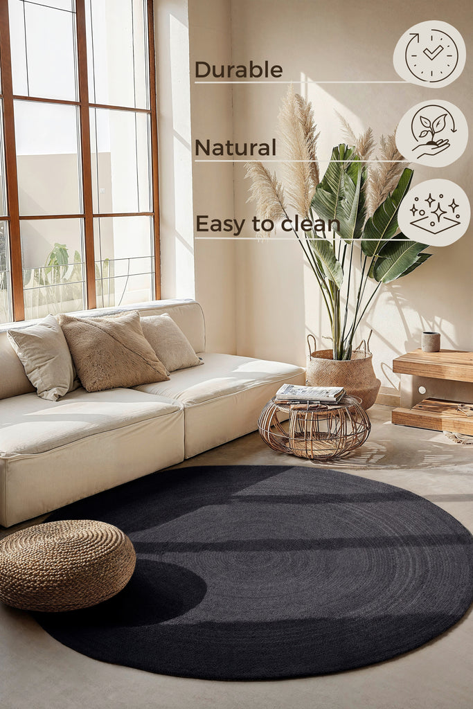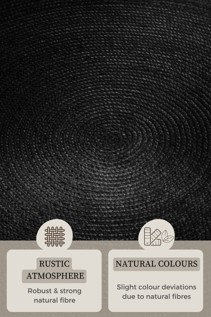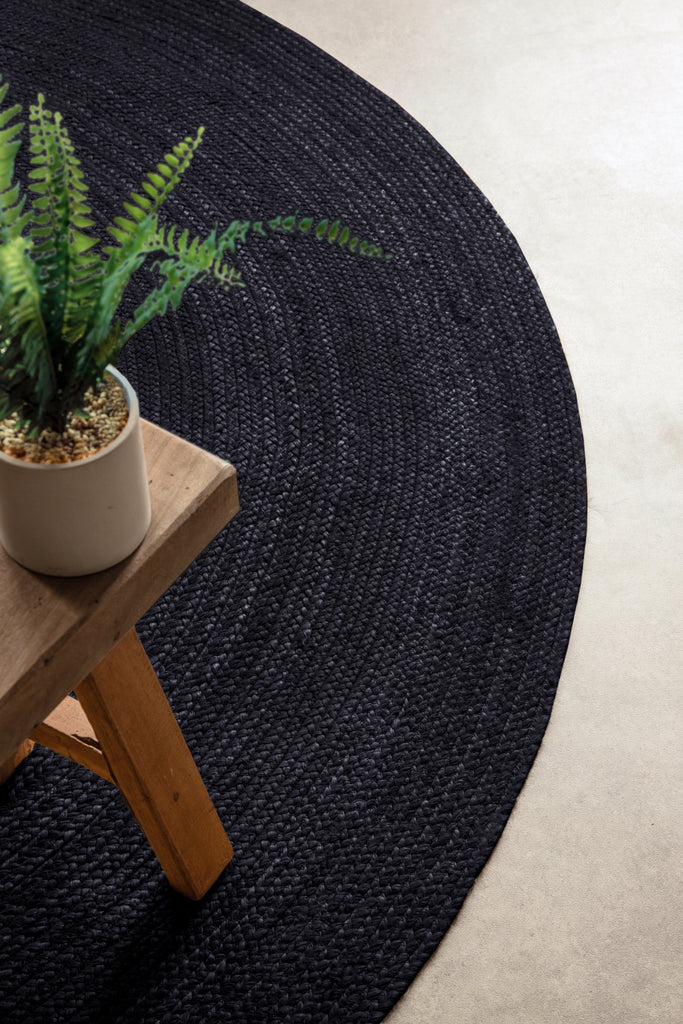 JUTE FLETTET TÆPPE RANGPUR RUND, SORT