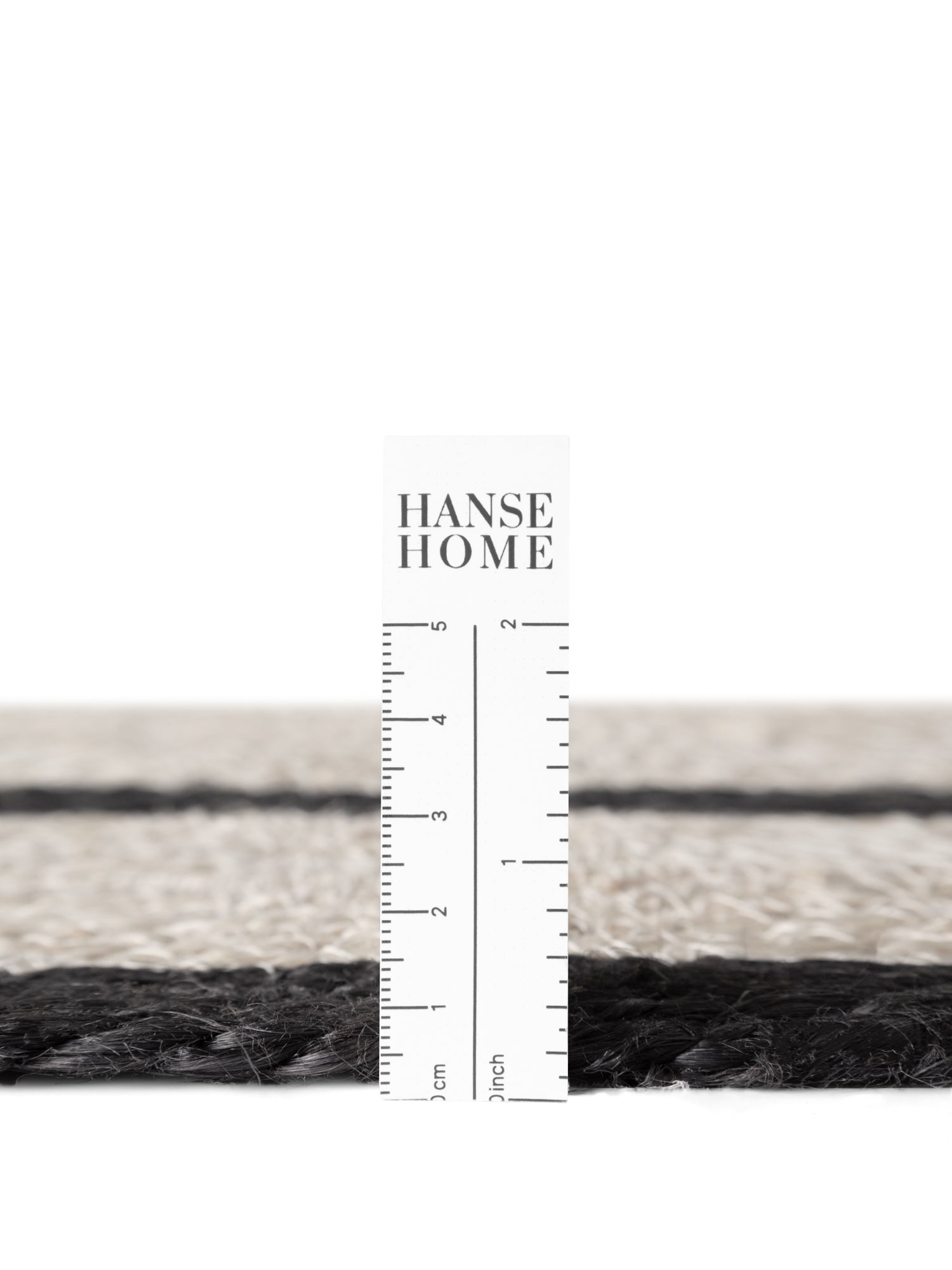 Tæppet er håndvævet i slidstærke jutefibre, hvilket betyder, at hvert tæppe er unikt med naturlige variationer i farve og struktur. Ved første brug kan der forekomme en let, naturlig duft, som hurtigt forsvinder.