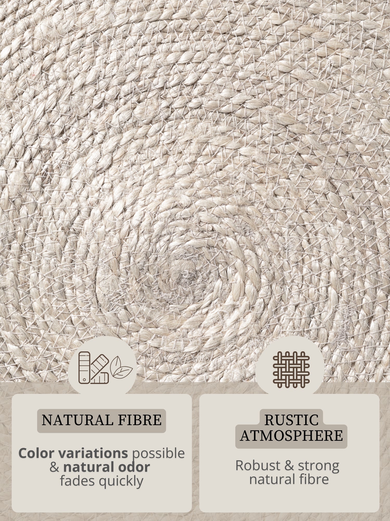 JUTE FLETTET TÆPPE LINA RUNDT, NATUR-ELFENBEN-SORT