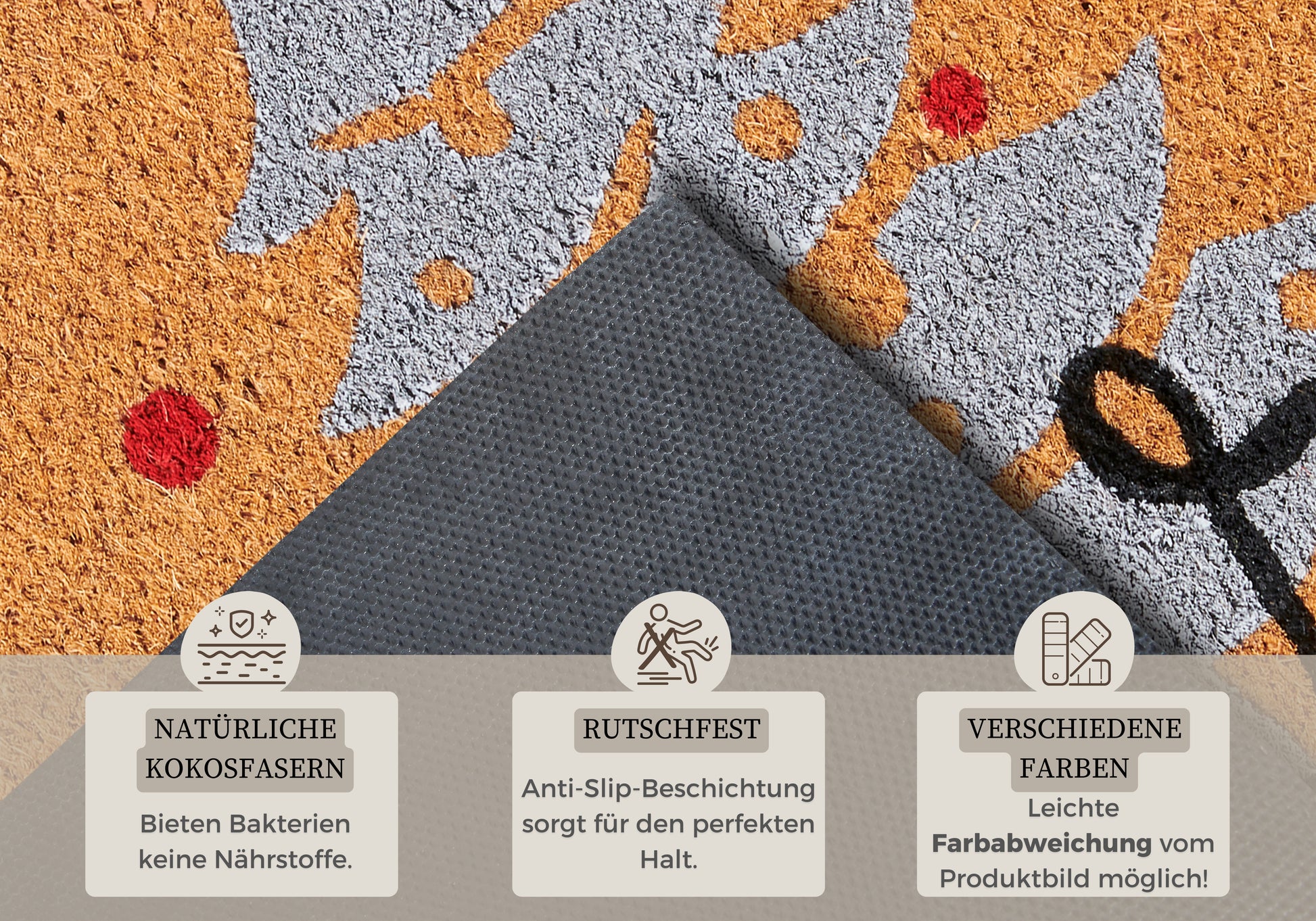 Vi har fokuseret på bæredygtighed ved at bruge kokosfibre, der er et naturligt og miljøvenligt materiale. Du kan derfor nyde både funktionalitet og samvittighedsfuldhed med vores dørmåtte.