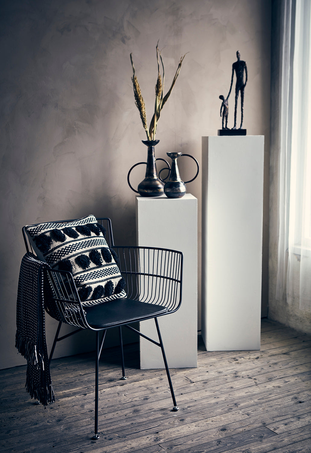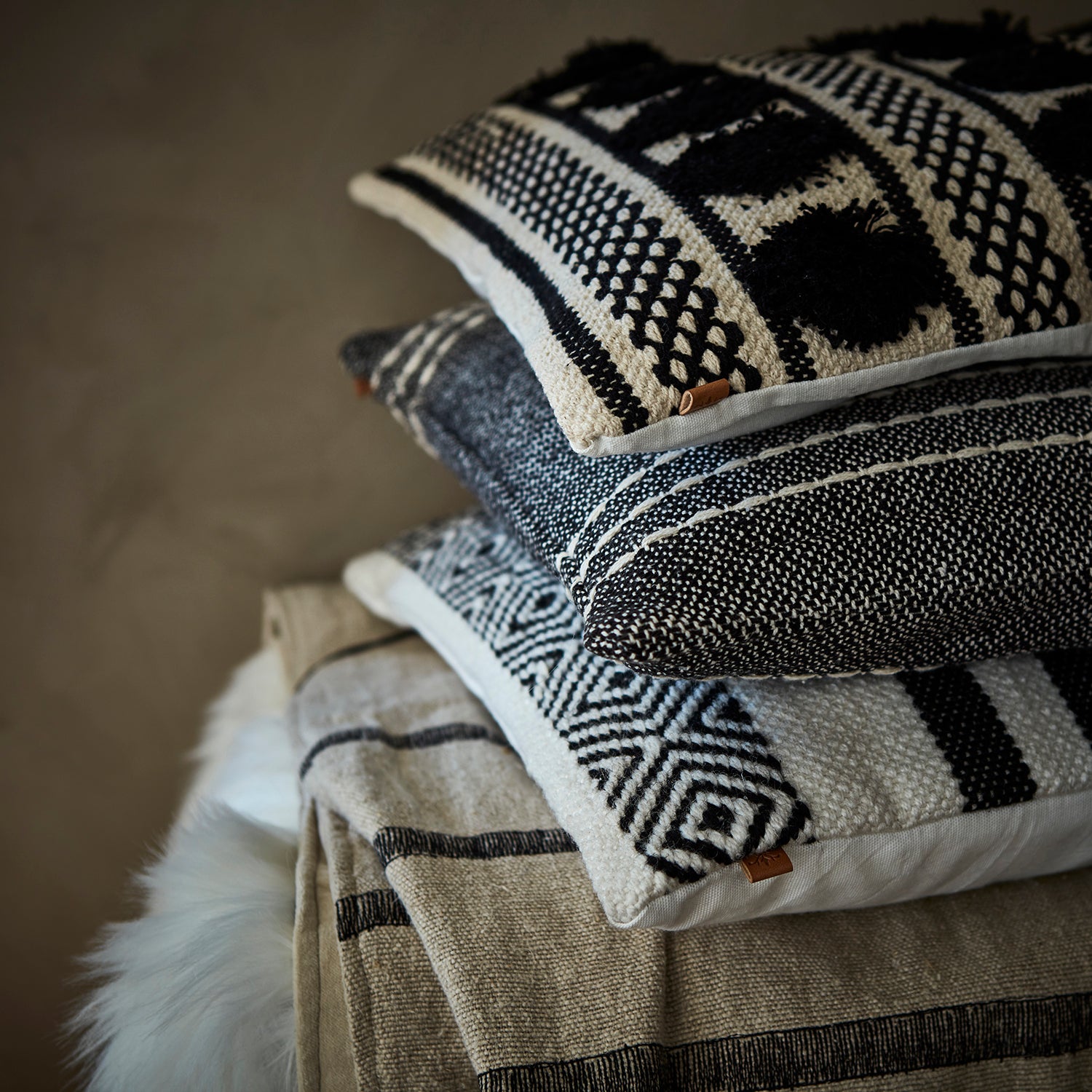 Skab et elegant og tidløst udtryk i hjemmet med Nina pudebetræk i smukke kontraster mellem sort og ivory. Det håndvævede design giver et unikt og eksklusivt look, som passer perfekt til både sofaen, lænestolen eller soveværelset.