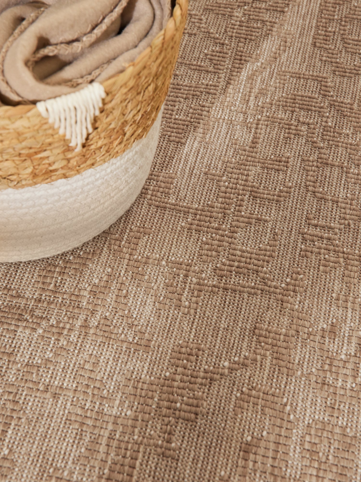 Duoro Vendbart Udendørs Tæppe er det perfekte valg til at opgradere dit udendørs rum med både stil og funktionalitet. Maskinvævet af 100% polypropylen, kombinerer dette tæppe holdbarhed og et moderne design, der kan modstå udendørs forhold. Det vendbare design giver dig mulighed for at skabe to forskellige looks med ét tæppe – en fleksibel løsning til din terrasse, have eller balkon.