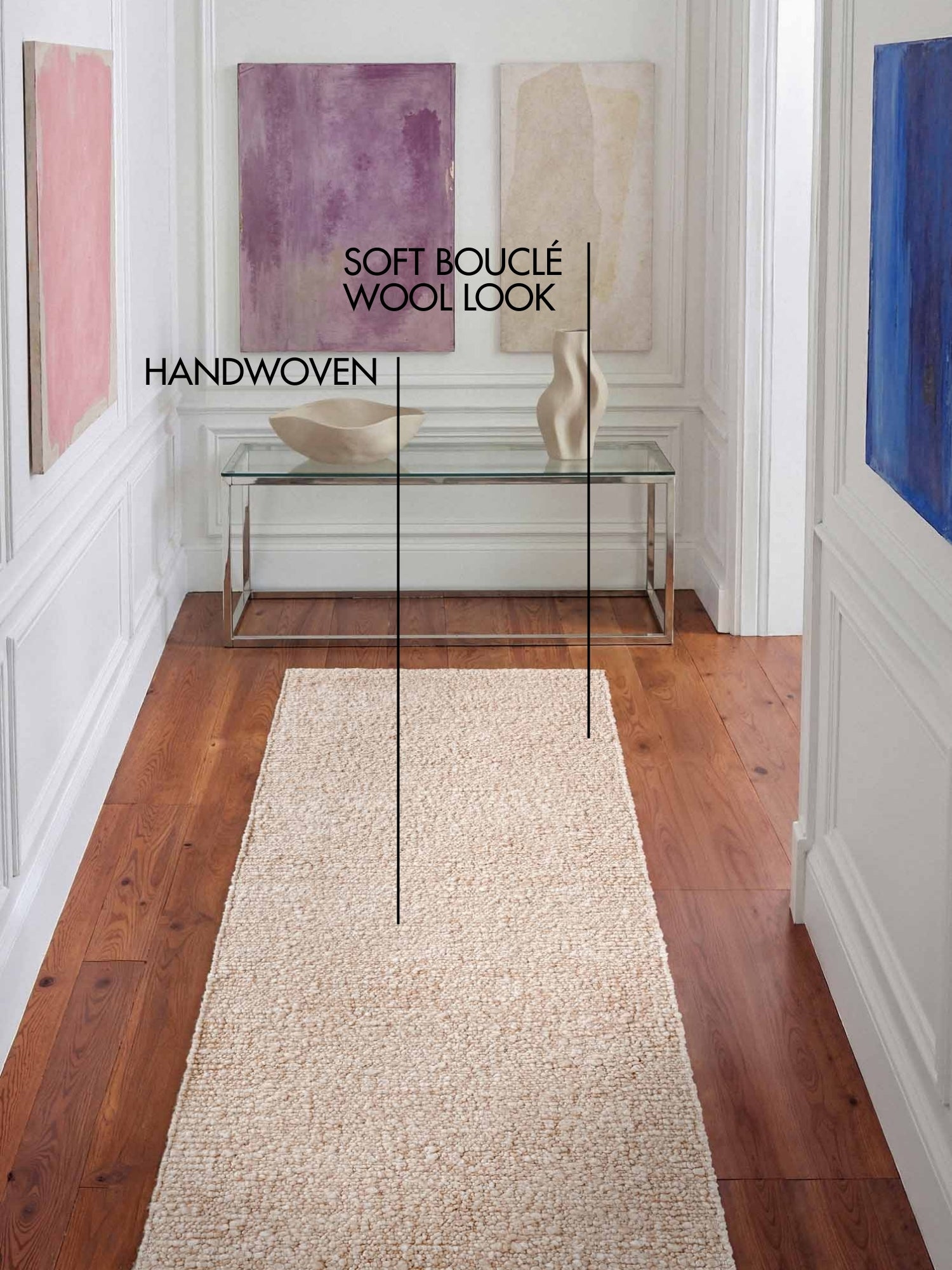 Ted Baker Notting Hill er et håndvævet, kortluvet tæppe med et elegant bouclé-udtryk og en blød, behagelig overflade. Tæppets uldlignende look giver rummet varme og karakter og fungerer som et stilfuldt element i både moderne og klassiske hjem.