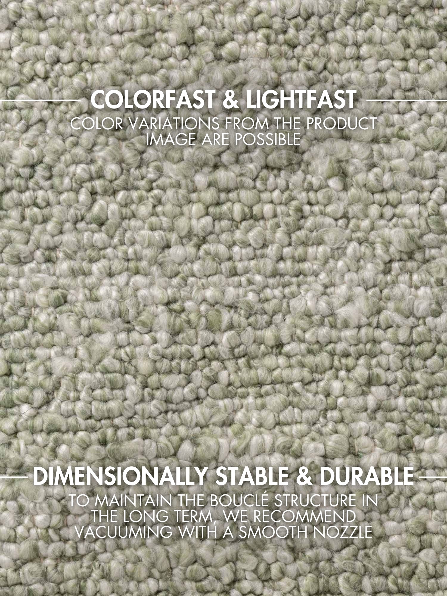 For at sikre tæppets holdbarhed anbefales skånsom støvsugning med glat mundstykke uden børste.