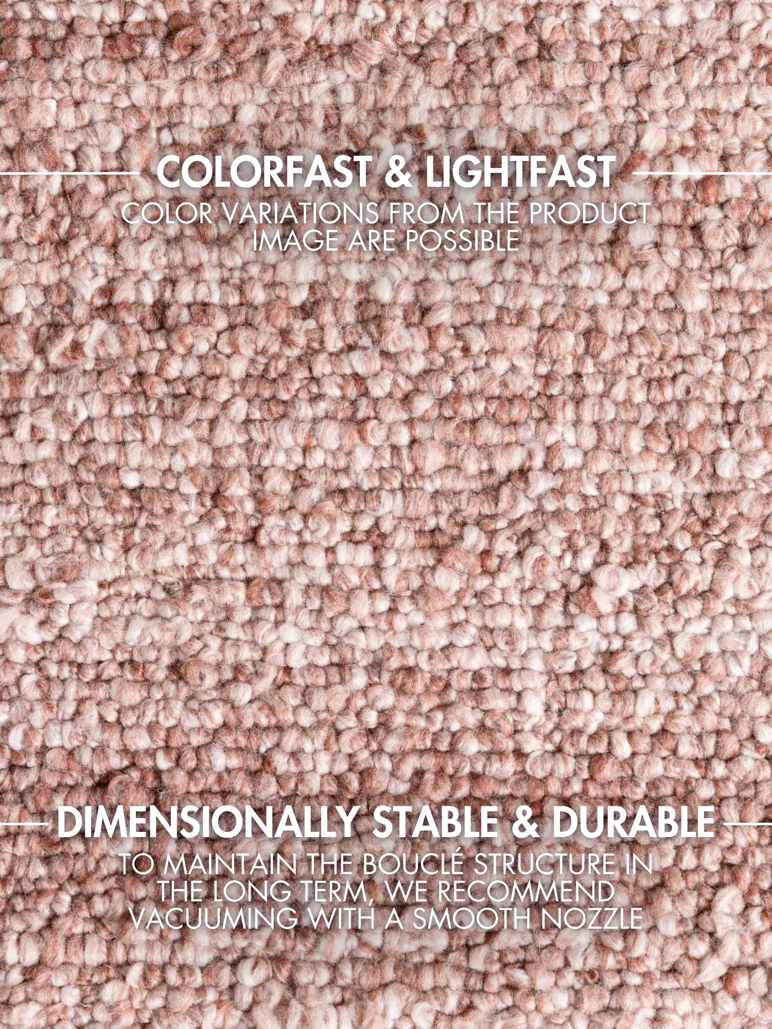 For at sikre tæppets holdbarhed anbefales skånsom støvsugning med glat mundstykke uden børste.