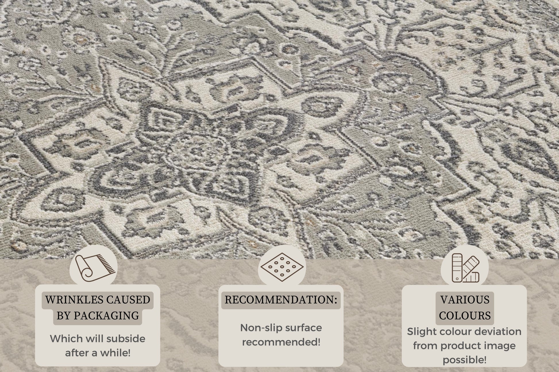 Tæppet præsenterer detaljerede og tidløse mønstre, der tilføjer en klassisk elegance til ethvert rum. De flotte designs skaber en varm og indbydende atmosfære. Mens polypropylen er kendt for sin robusthed, tilbyder dette tæppe stadig en behagelig fornemmelse under fødderne, hvilket gør det til det perfekte valg for dem, der ønsker både stil og komfort.