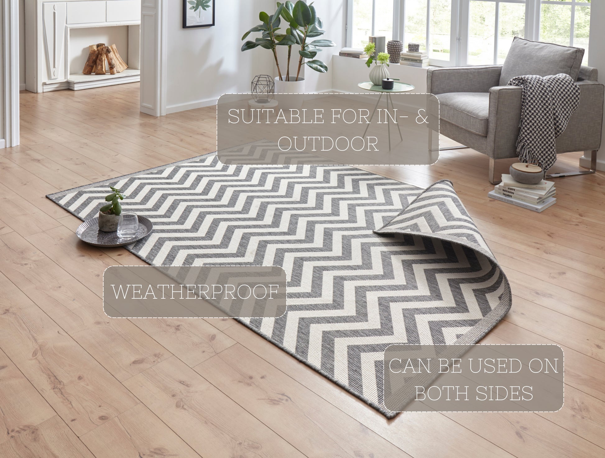 Twin Vendbart Tæppe er et alsidigt valg til enhver indretning, det er velegnet til både indendørs og udendørs brug. Dette fladvævede tæppe, lavet af 100% polypropylen, overrasker med sin vendbare designmulighed, der tilføjer fleksibilitet og funktionalitet til din boligindretning. Den vendbare funktion tilbyder ikke kun variation i udseendet, men forlænger også tæppets levetid.