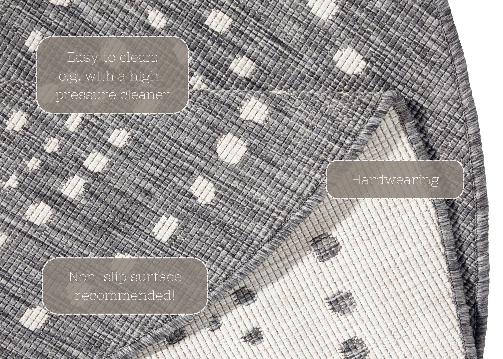 Twin Vendbart Tæppe er et alsidigt valg til enhver indretning, det er velegnet til både indendørs og udendørs brug. Dette fladvævede tæppe, lavet af 100% polypropylen, overrasker med sin vendbare designmulighed, der tilføjer fleksibilitet og funktionalitet til din boligindretning. Den vendbare funktion tilbyder ikke kun variation i udseendet, men forlænger også tæppets levetid.