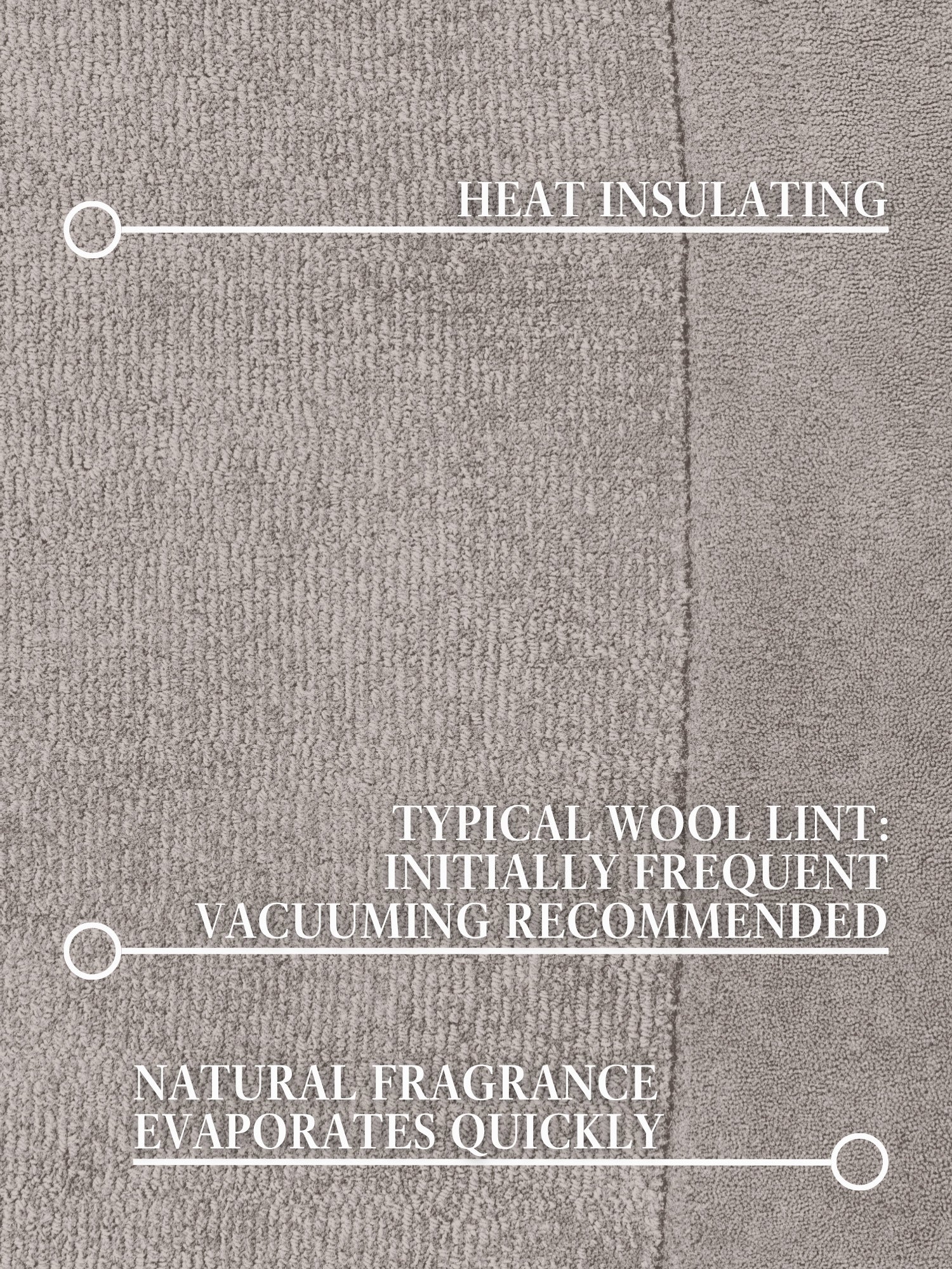 I starten kan der forekomme let løse fibre, hvilket er helt normalt for nye uldtæpper. Regelmæssig støvsugning reducerer fældning over tid og hjælper med at bevare tæppets smukke udtryk.