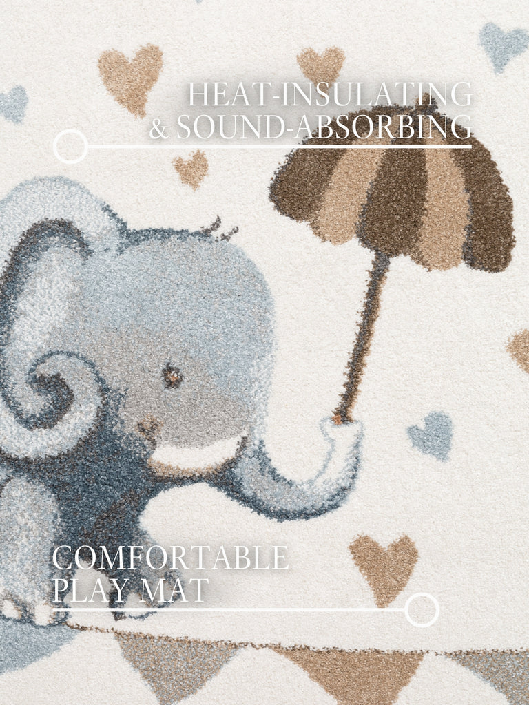 VILLEROY & BOCH BOHO KIDS BØRNETÆPPE RUNDT - ELEFANT REGN, CREME MULTI 106303