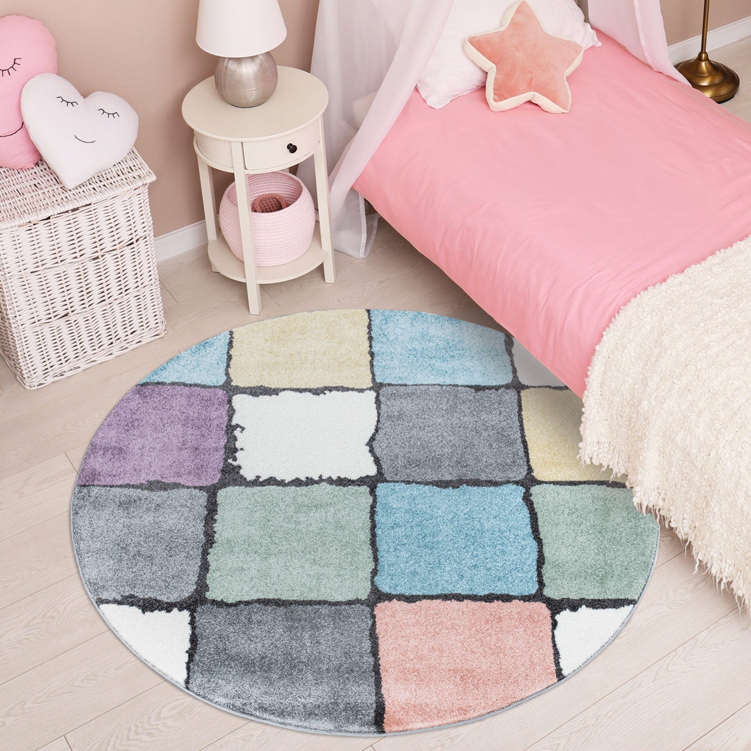 Tæpperne er maskinvævet af højkvalitets polypropylen/friseé-garn og er testet for skadelige stoffer med Oeko-Tex Standard 100. Overfladen er slidstærk, nem at pleje og vedligeholde, så intet står i vejen for selv den vildeste tumlen på værelset. De er velegnet til gulvvarme, og de kortluvede tæpper kan nemt rengøres med en støvsuger eller en fugtig klud.